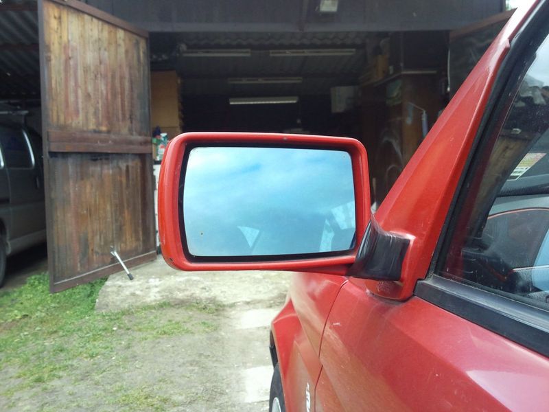 Fent van a szép új ajtóm. Kiderült, hogy nem lehet a zsanérok tartócsavarjaihoz rendesen hozzáférni, ezért le kellett vennem a küszöbborítást, a BE sárvédőt, és a lökhárítót. Hosszas mériscskélés és alátétezés után sikerült 95%-osra feltenni az ajtót. Néha szemerkélt az eső, de már nem volt visszaút. A legszebb, hogy 2-kor kezdtem és fél 9-kor fejeztem be.