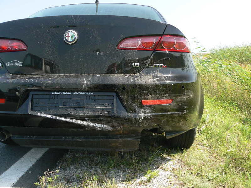 Az történt, hogy a hortobágyi hídivásár miatt dugós-dadogós forgalomban lett egy kis lauf, aztán kb. 200 m. múlva fék, és az ipse mögöttünk valszeg elbambult egy kissé. Én láttam a tükörben, hogy gyorsít, de már kaptuk is a csattanást. Az érdekes, hogy úgy elnyelte az energiát a gép, hogy még csak nem is rándultunk. (Csak ijedtünk, meg dühöngtünk, hyog miért nem lehet figyelni ilyen forgalomban...)